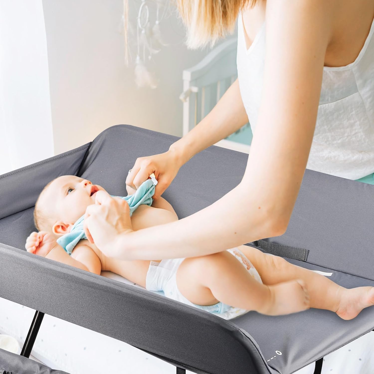 【Folding Design for Straightforward Storage】We’ve got designed the newborn altering desk to be foldable, which suggests you possibly can shortly fold it right into a compact measurement after which retailer it in any supreme nook. As well as, the versatile wheels with brakes not solely cut back the burden throughout transportation but additionally remedy potential security hazards.