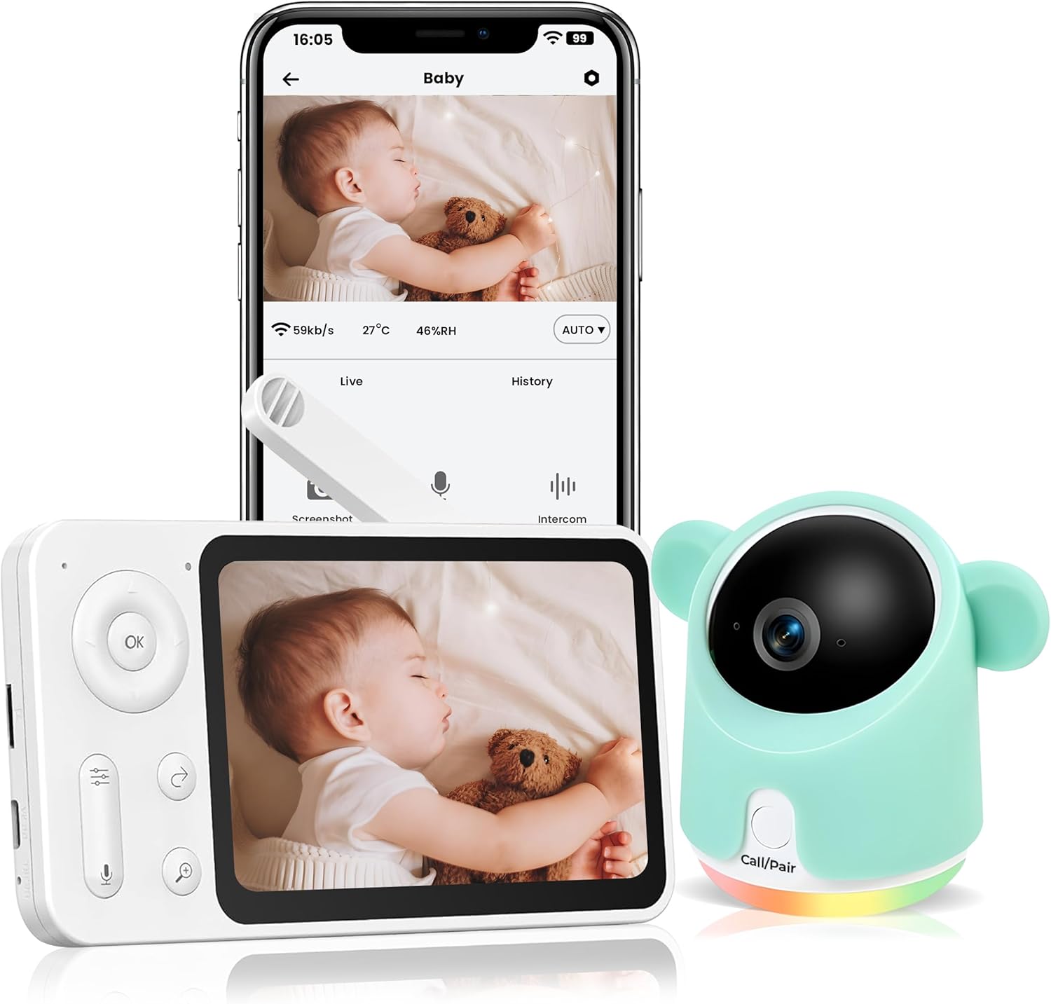 【Gorgeous 1080P High quality and Temperature & Humidity Sensor】Vivid 1080p HD high quality and easy video, capturing each cute second of your child with crystal-clear precision. Even in a darkish child room, the infrared evening imaginative and prescient retains a watchful eye, offering peace of thoughts across the clock. Child cameras keep knowledgeable with real-time temperature and humidity monitoring, creating the right atmosphere on your child. Elevate your child monitoring expertise with these important options. (*App not work for 5G)