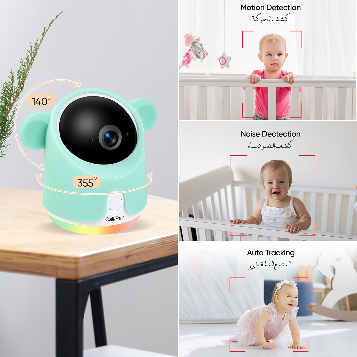 【360° View and Clever Movement Monitoring】The infant monitor built-in wide-angle lens, now not see solely a nook of the crib! With 355°Pan and 140°Tilt, which provides you a 360° view of your child’s environment. Child digicam monitor assist digital zoom in as much as 4x, each element is inside attain. The superior movement monitoring characteristic provides an additional layer of safety by robotically following your child’s actions. (*App ONLY assist 2.4GHz WiFi)