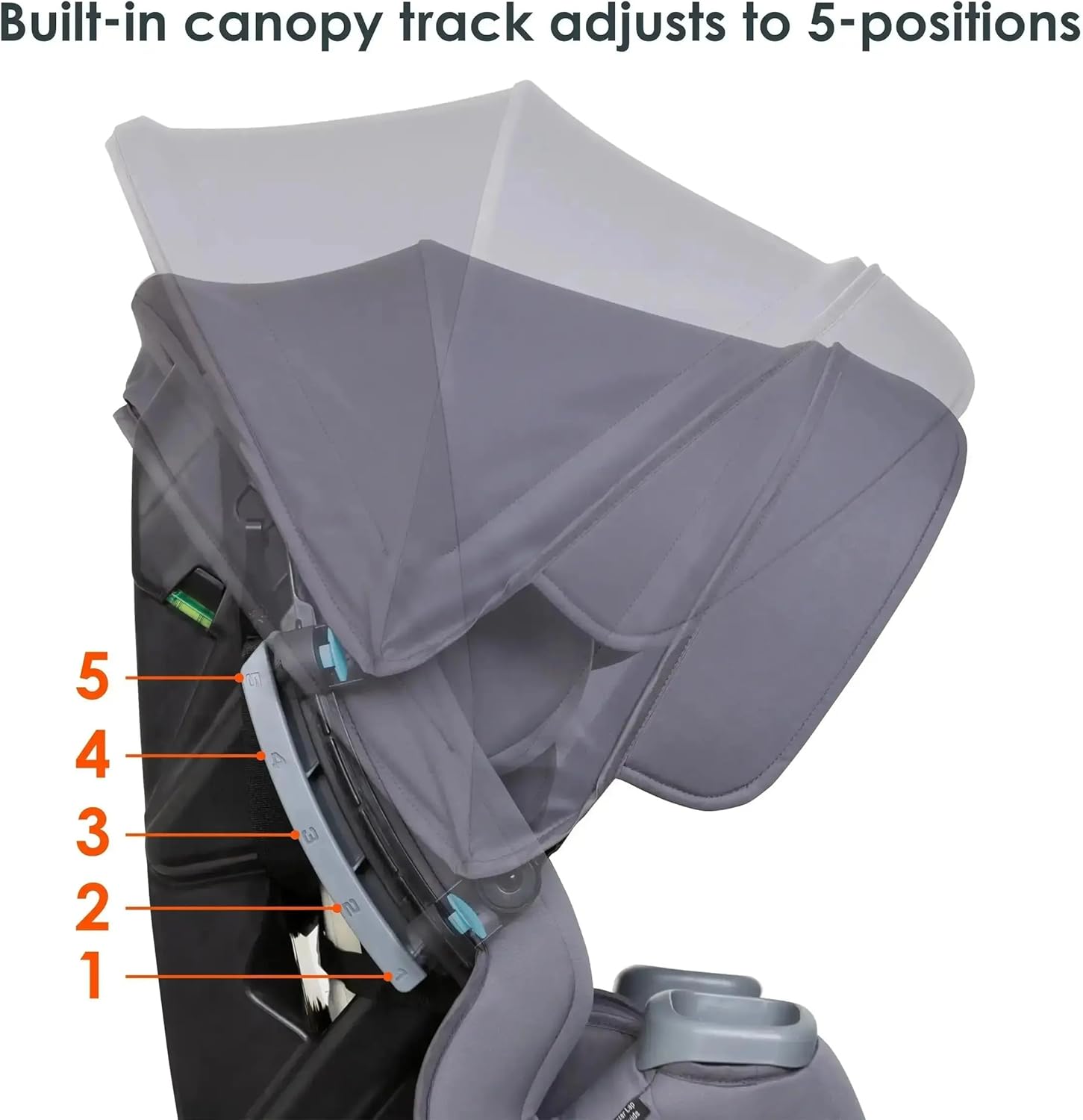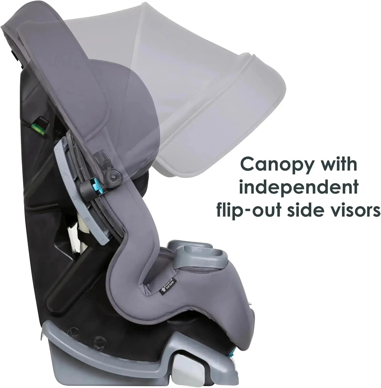 Built-in Adjustable Cover for UV Safety: Built-in top and angle adjustable cover for in-car UV safety. Flip-out facet visors present extra shade safety for both facet of the automotive seat.