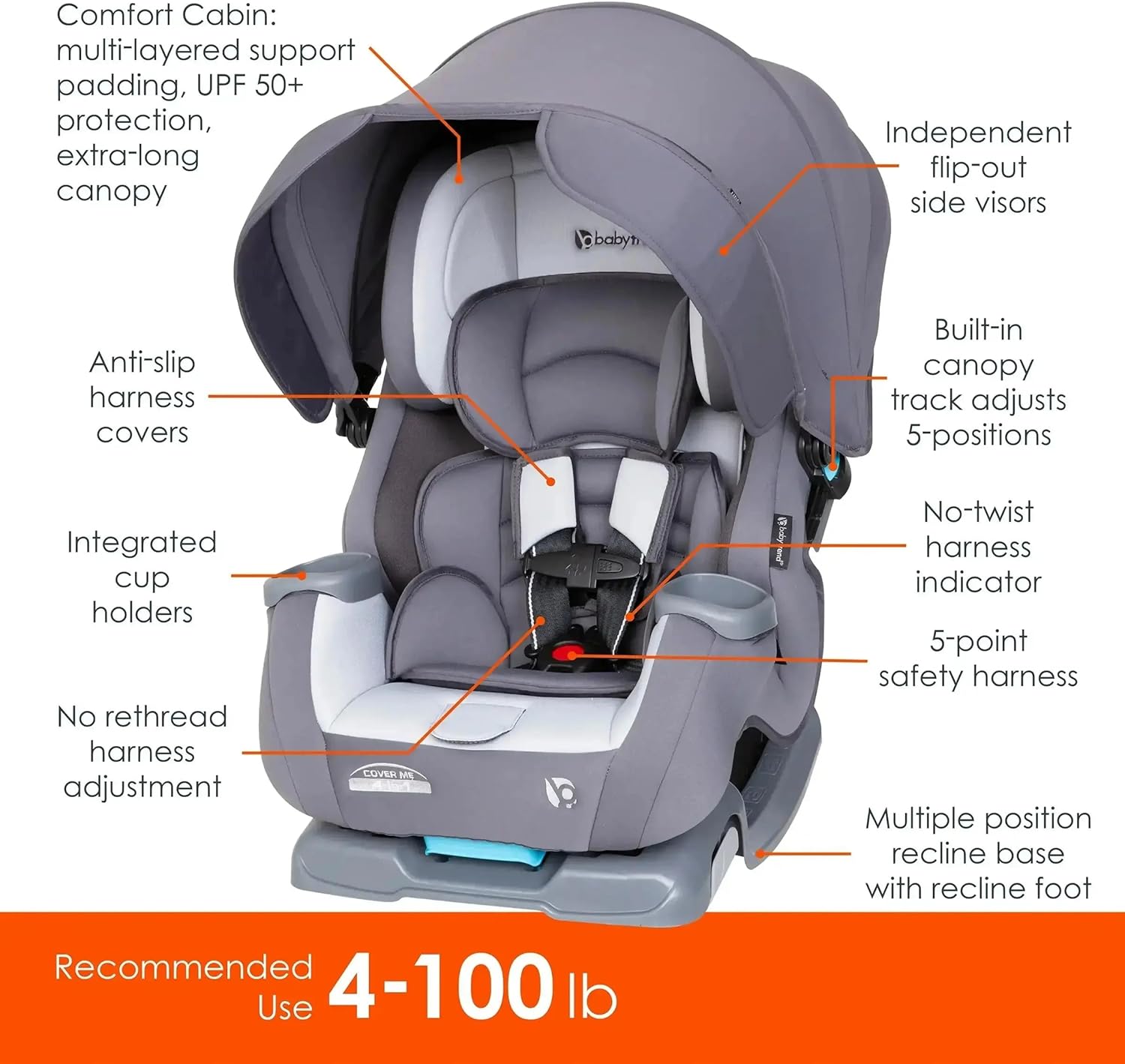 Introducing the Child Development CoverMe 4-in-1 Convertible Automotive Seat! s In our examine involving 400+ mothers at present utilizing convertible automotive seats, the #1 criticism about their convertible is youngsters irritated by daylight within the vehicles. The CoverMe has an built-in patented top and angle adjustable UPF 50+ cover for full in-car shade safety. The cover is built-in and hooked up on a built-in monitor so it is simple to regulate and take away. Flip-out facet visors present additional shade safety for youths when the automotive is in movement and the daylight’s coming from a number of instructions. Constructed with premium and deluxe cloth and supplies, the Consolation Cabin Seat presents additional padding to maintain your youngster comfy on an extended journey. Two deep cup holders additionally enable youngsters to position their sippy cups and snacks inside attain. The built-in headrest with no rethread harness presents ultra-convenience for folks when adjusting the headrest place. With the zero radius recline, plus flip foot for twin recline adjustment, dad and mom can simply regulate the seat and recline within the automotive. Lastly, the CoverMe can maintain a baby from 4 – 100lbs with 4 distinctive modes: Rear dealing with toddler, rear dealing with toddler, ahead dealing with toddler and belt positioning booster.