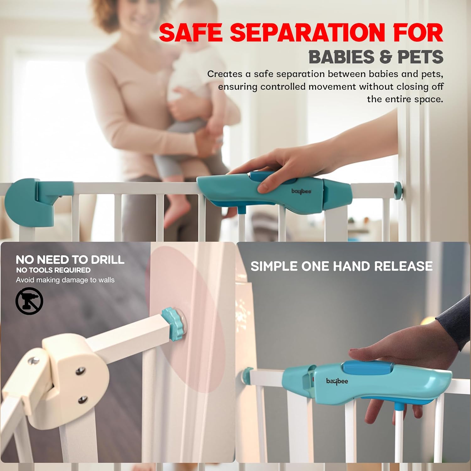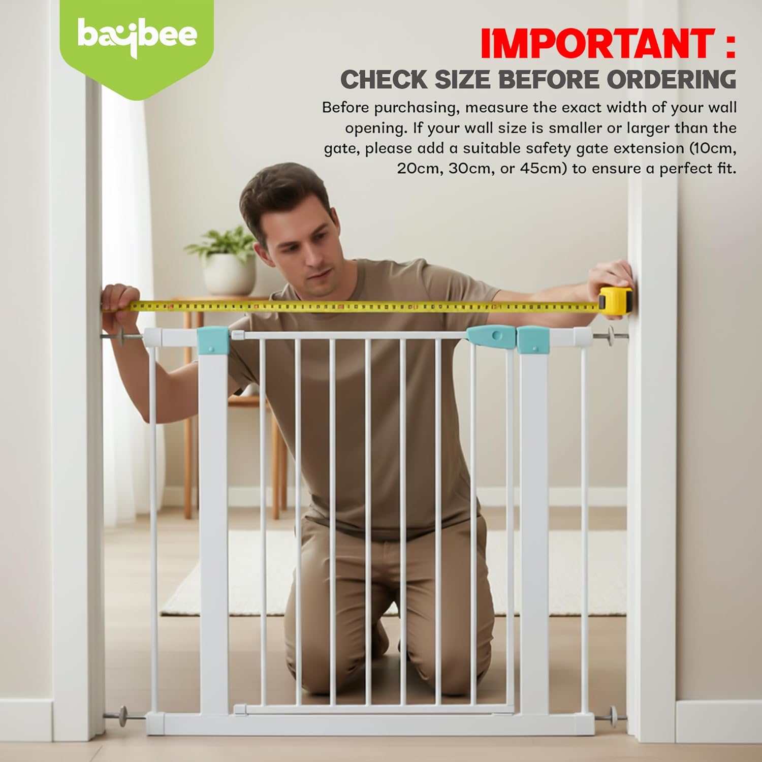 the Baybee child gate incorporates a one-touch launch straightforward slide deal with security lock for easy operation. It features a safe spring-loaded latch that retains the gate safely closed when not in use. The gate will be simply opened and closed with one hand and is appropriate with extension components of 10cm, 20cm, 30cm, and 45cm, extending as much as 175cm. You needn’t fear about forgetting to lock the gate as a result of it robotically closes itself resulting from gravity if opened lower than 90°; past 90°, it stays open. The gate is constructed from sturdy all-steel for comfort and features a walk-through door. It meets security requirements with EN1930:2011+EN71 certification. The simple open deal with incorporates a two-touch launch security lock that adults can simply function however is designed to be troublesome for youngsters. The gate strain mounts and might assist as much as 95 Kgs, putting in in simply 5-10 minutes. Constructed to resist toddler exercise, the Baybee Straightforward Step Child Gate gives peace of thoughts for folks with its sturdy all-steel design and fast set up course of.