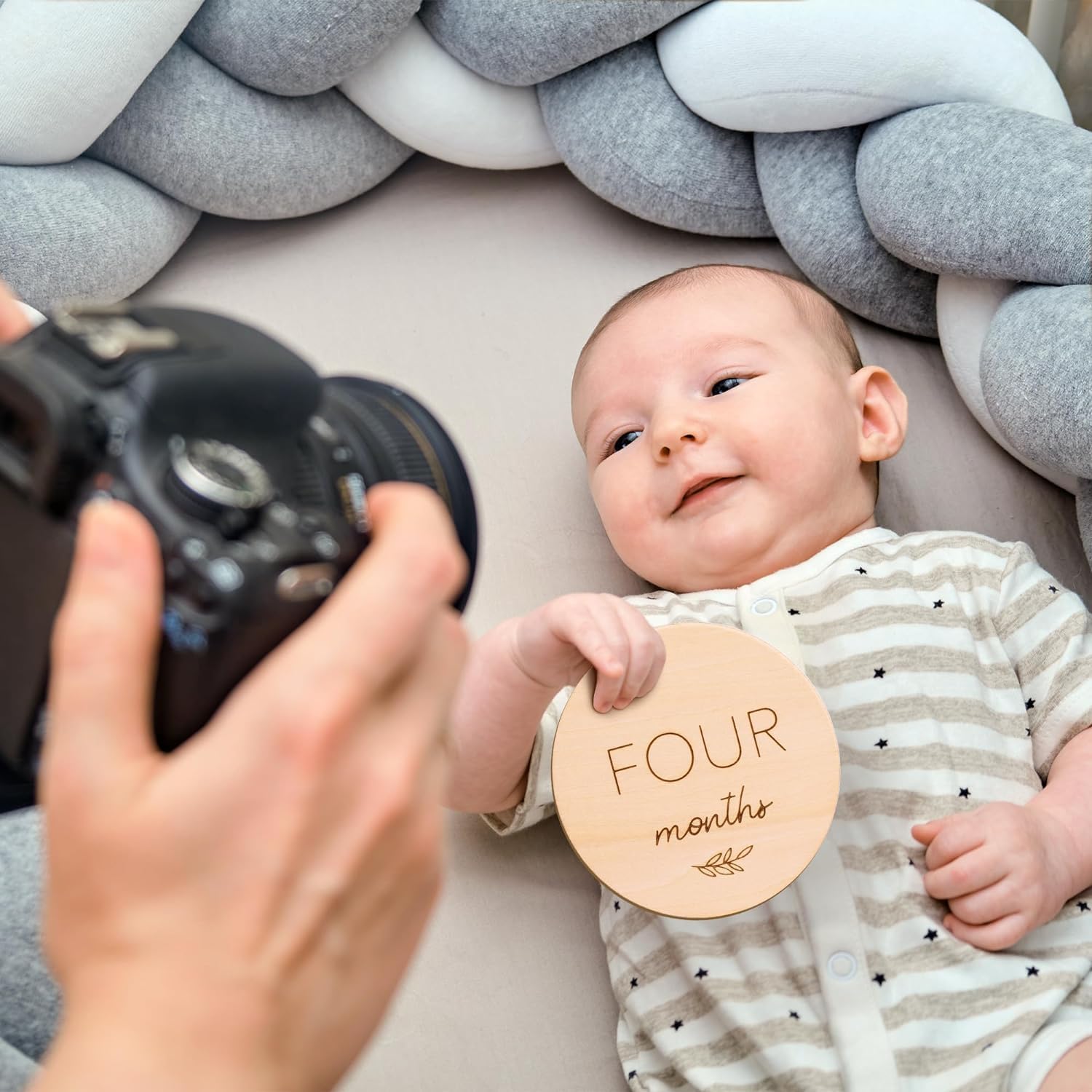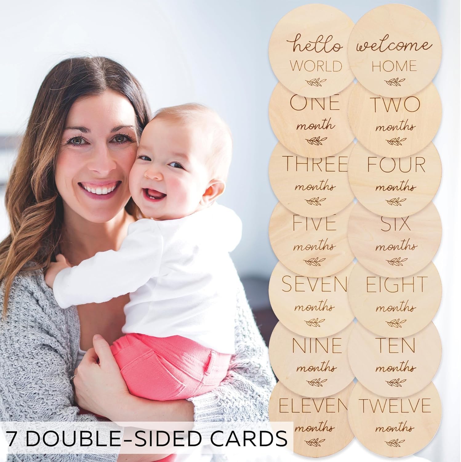 Boolygo Lovely Child Month-to-month Milestone Playing cards – The Good Picket Discs for Lovely Milestone Photos of Your New child Boy/Lady – 7 Reversible Circles incl. Announcement & Signal Are A Nice Present