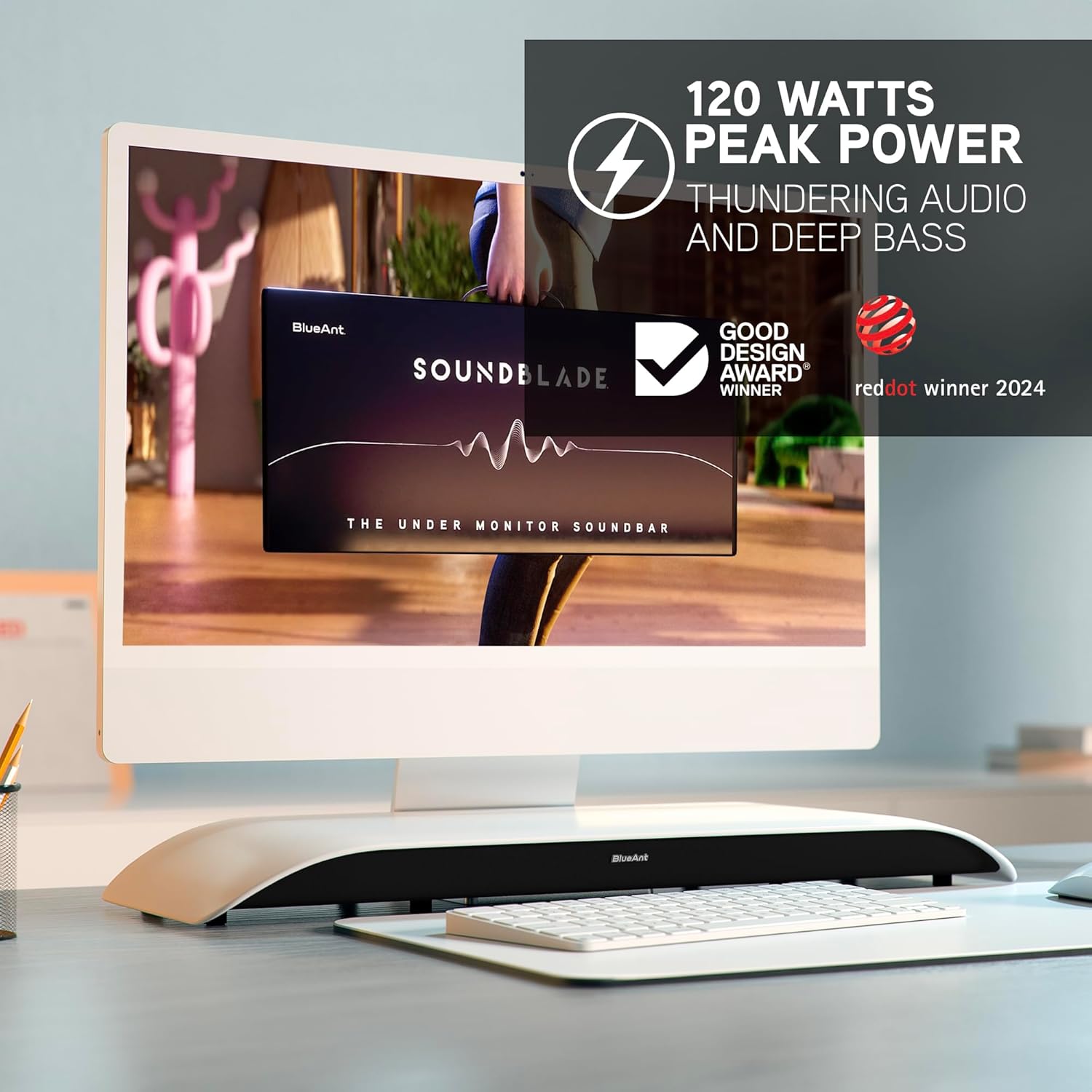 Award Successful Design – A superbly crafted, modern, low-profile gadget, The Soundblade enhances and enhances any desktop setup. Its elegant kind issue is particularly designed to combine seamlessly below your present monitor, making a harmonious and unobtrusive addition to your workspace.