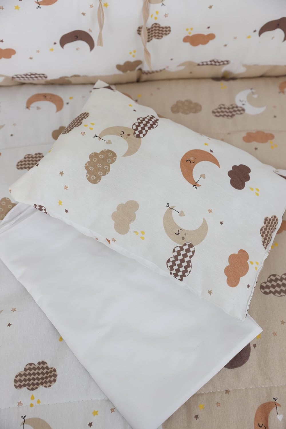 FUN MOMENT 7-Piece Crib Bedding with Guardrail Brown/White