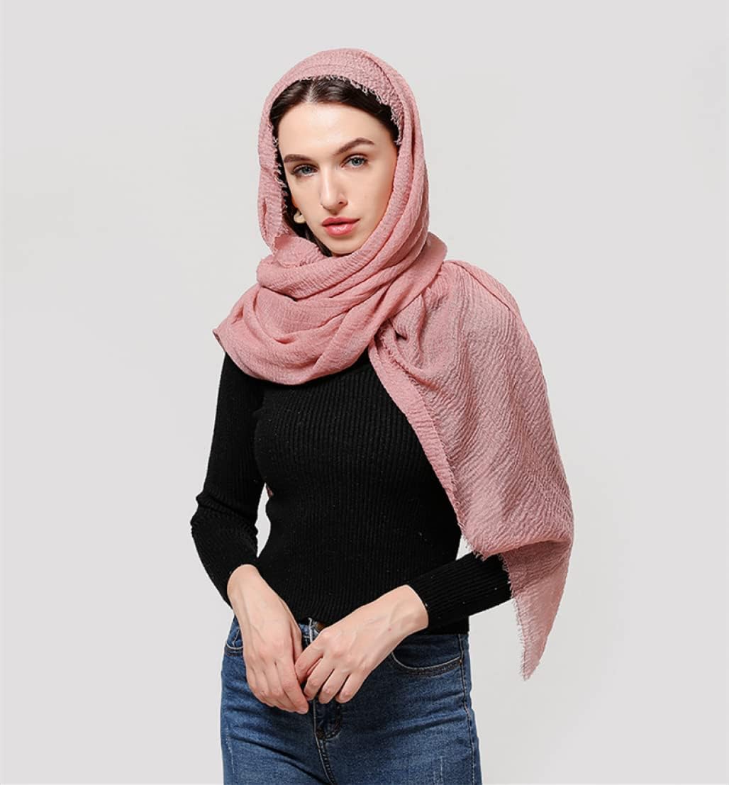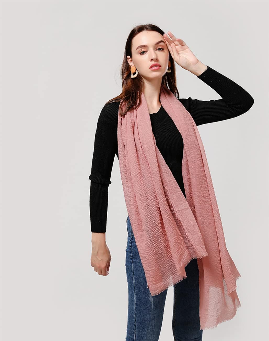 Goodern 3 Pcs Women Soft Cotton Crinkle Scarf Shawl for All Seasons – Long Fringe Wrap in Solid Colors – Fashion Big Head Scarf Hijab for Evening Party Dress Wedding