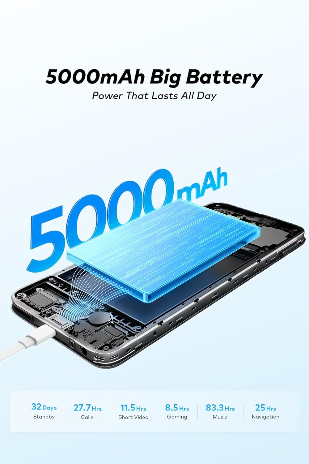 PERFORMANCE SPECS: Octa-core Unisoc T7100 processor paired with 3GB RAM and 128GB storage, expandable as much as 1TB by way of microSD card.