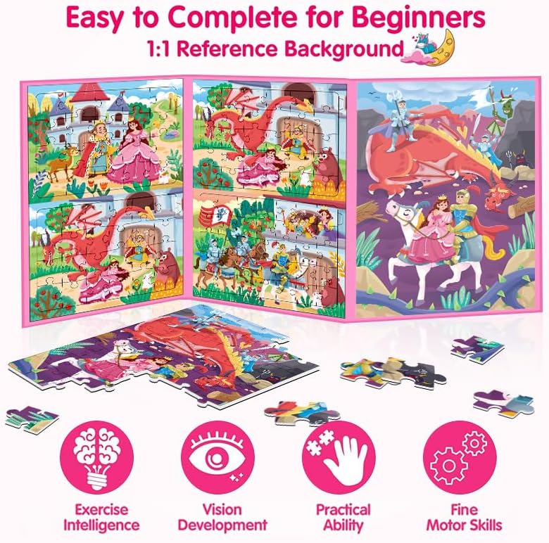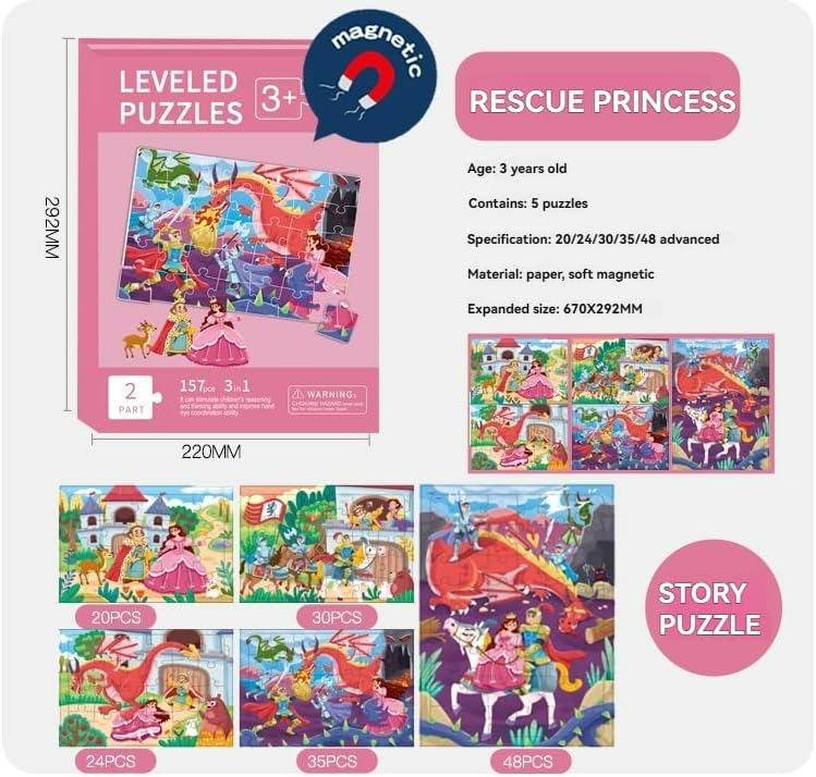 RESCUE THE PRINCESS MAGNETIC JIGSAW PUZZLES — The princess youngsters puzzles are ideally designed for 4-8-year-olds. The 5 photos with the theme of saving the princess are every of which is specifically cute and distinctive. After piecing collectively all of the mini puzzles, youngsters can be pleasantly stunned on the amazingly great princess world.