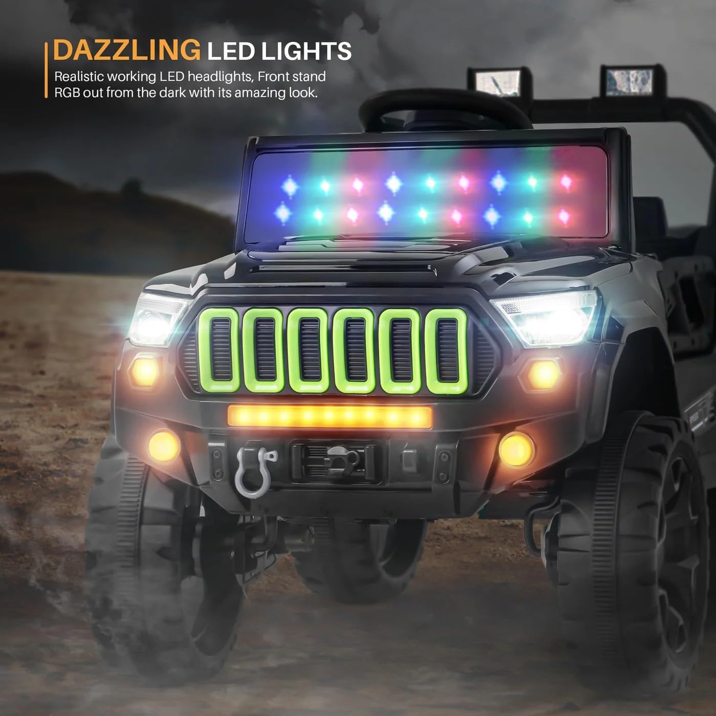 The hanging RGB windshield lights create a cool visible impact that captures consideration, whereas the built-in music system and USB port permit children to play their favourite tunes as they cruise alongside.