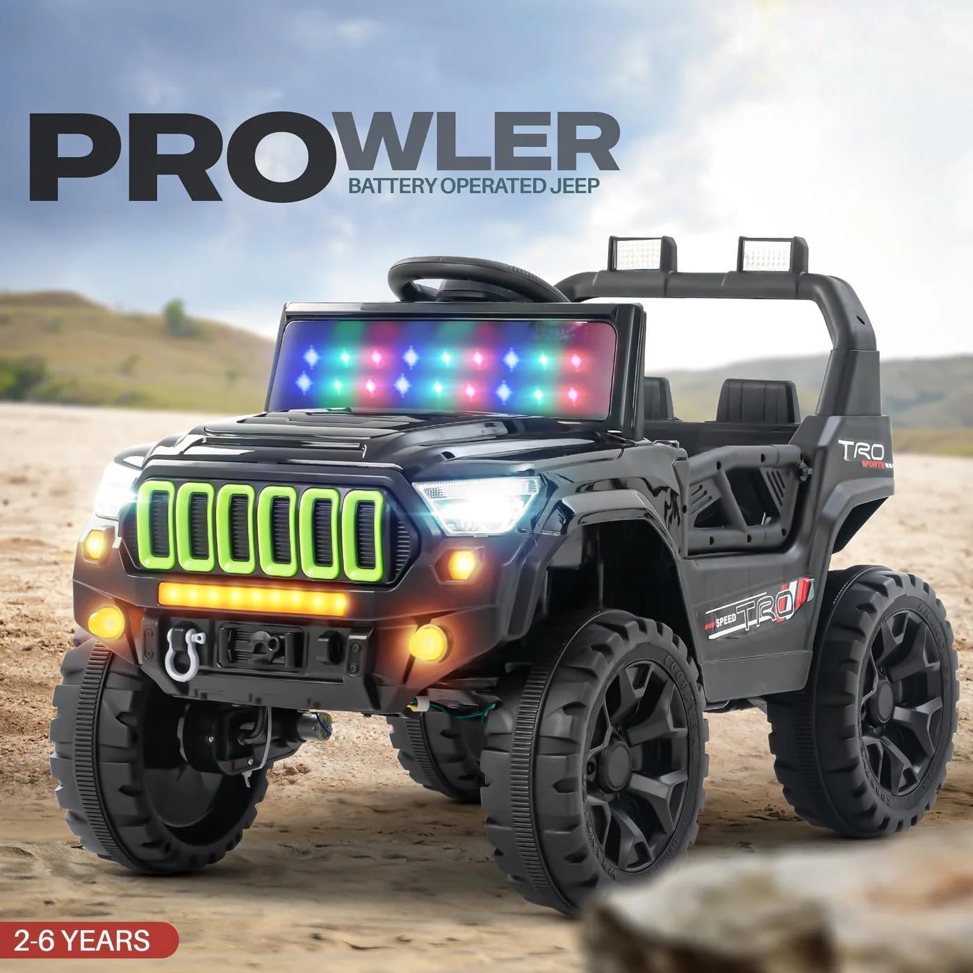 Expertise the joys of journey with the 4×4 Battery Operated Journey on for Children, designed to ship limitless enjoyable, pleasure, and secure driving for kids aged 2 to six years. This premium ride-on toy automotive combines strong engineering and trendy know-how to present your youngster a sensible driving expertise proper at dwelling. Crafted with sturdy, child-safe supplies, this electrical jeep includes a spacious seat, an ergonomic steering wheel, and foot pedals that empower little drivers to discover their world confidently. Geared up with a robust massive battery, the 4×4 Journey on ensures longer playtime so children can get pleasure from uninterrupted rides indoors or open air. The hanging RGB windshield lights create a cool visible impact that captures consideration, whereas the built-in music system and USB port permit children to play their favourite tunes as they cruise alongside. The ride-on additionally consists of ahead and reverse gear choices, a clean acceleration system, and lifelike horn and engine sounds to boost the driving journey. For security and comfort, the trip on comes with sturdy wheels and a excessive floor clearance, offering stability and the flexibility to sort out completely different surfaces, from pavements to gardens. The safe seat belt and dependable braking system supply added safety throughout play. Mother and father may also management the jeep remotely, making certain a secure and supervised expertise for youthful riders. Accessible in a classy black end that appeals to each girls and boys, this battery-operated ride-on automotive is a perfect birthday or vacation reward that mixes leisure with motor ability improvement. Whether or not your youngster is exploring the yard or driving round the home, the 4×4 trip on delivers hours of imaginative play, constructing confidence and unforgettable reminiscences with each trip.