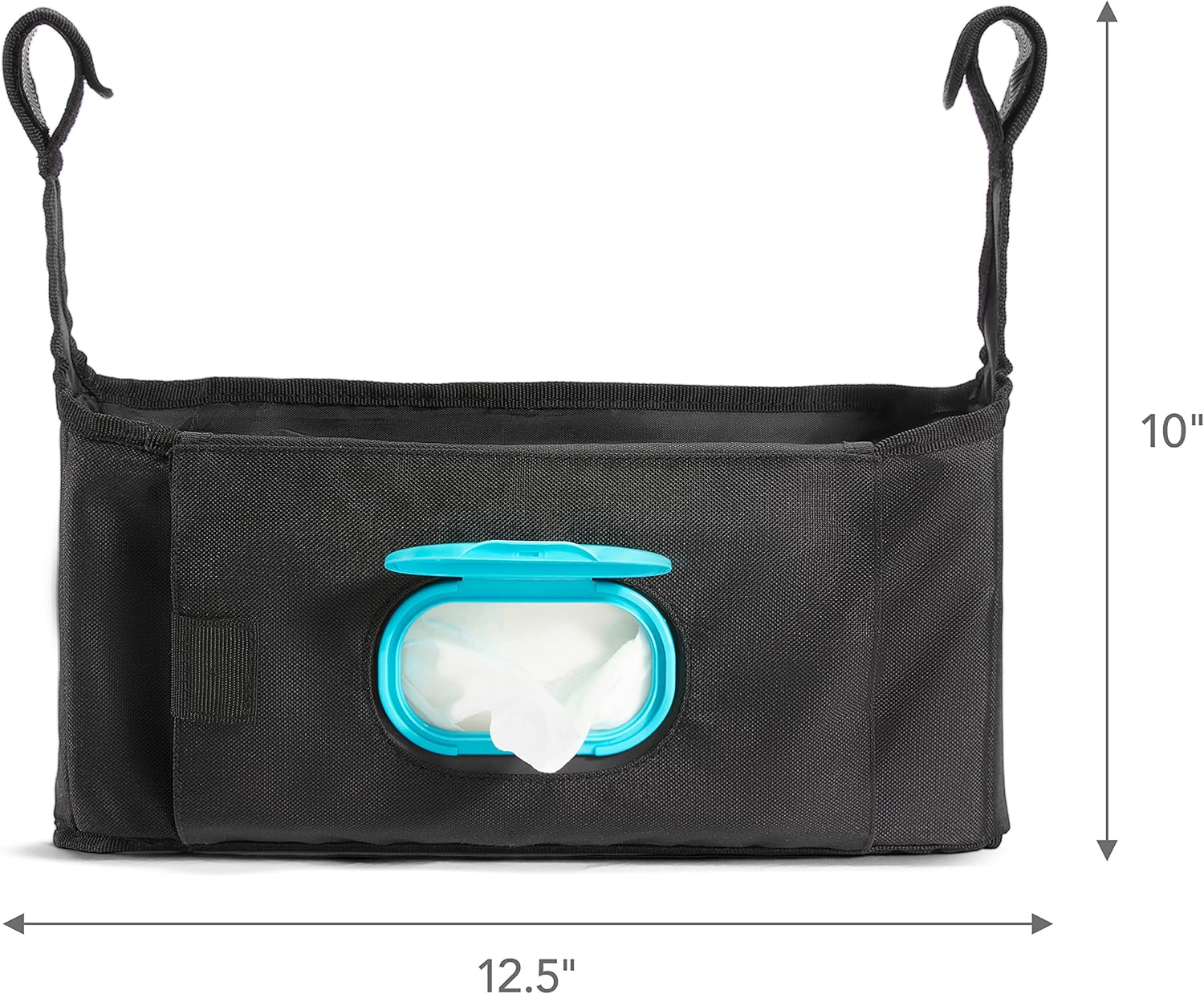 Contains refillable wipes case that folds down for straightforward entry and may be tucked away when not in use