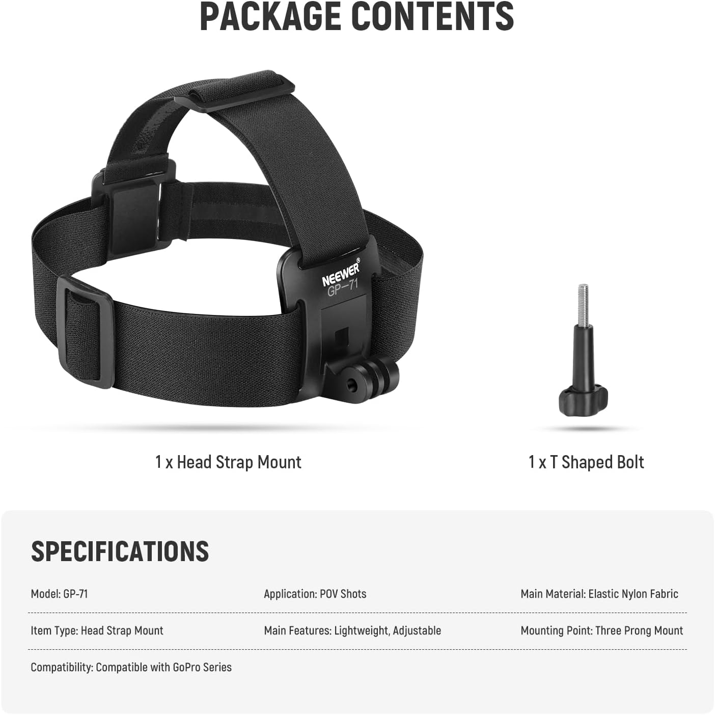 NEEWER GP-71 Digicam Mount Package contains an adjustable head strap mount and a T formed bolt to securely maintain your motion digital camera for capturing secure POV pictures throughout biking, mountaineering, browsing, skateboarding, parachuting, bungee leaping, and different excessive motion actions. Produced from elastic, light-weight nylon cloth, the strap is snug to put on and options adjustable sliders to suit all head sizes. The internal aspect of the strap is padded with nonslip rubber to maximise friction, guaranteeing added stability and security throughout intense motion.