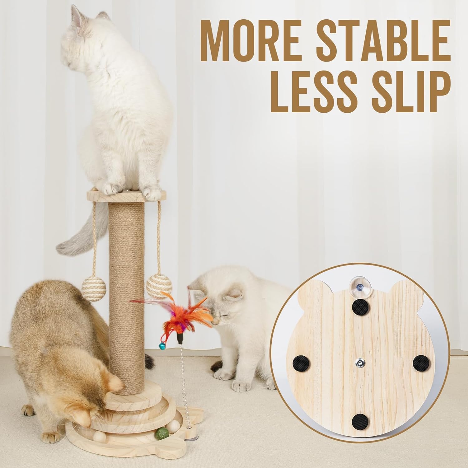 🐱【Pure Wood Base】 – The bottom of this cat scratching submit is product of strong wooden. The cat toy curler has been strengthened with higher supplies, lowering breakage. Moreover, non-slip pads stop extra undesirable actions. * Please be aware that it could have just a little odor of pure wooden.