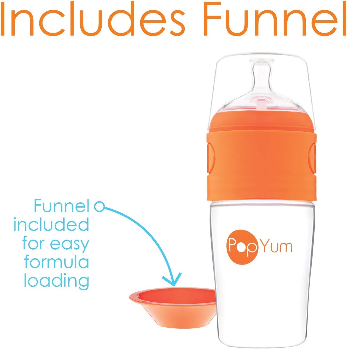 INCLUDES: One 9oz. PopYum child bottle (260 ml) with a #2 medium movement anti-colic and a funnel which makes loading method a breeze and stops method from falling into the water chamber.
