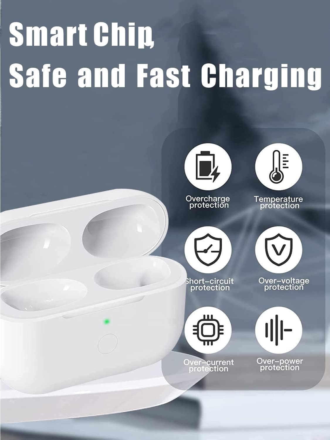 Our wi-fi charging case is made from high-quality ABS materials, which is odorless, scratch-resistant, shockproof, non-slip, and sturdy. The charging case protects your earphones from bumps, drops, and shocks, offering full safety to your earphones.