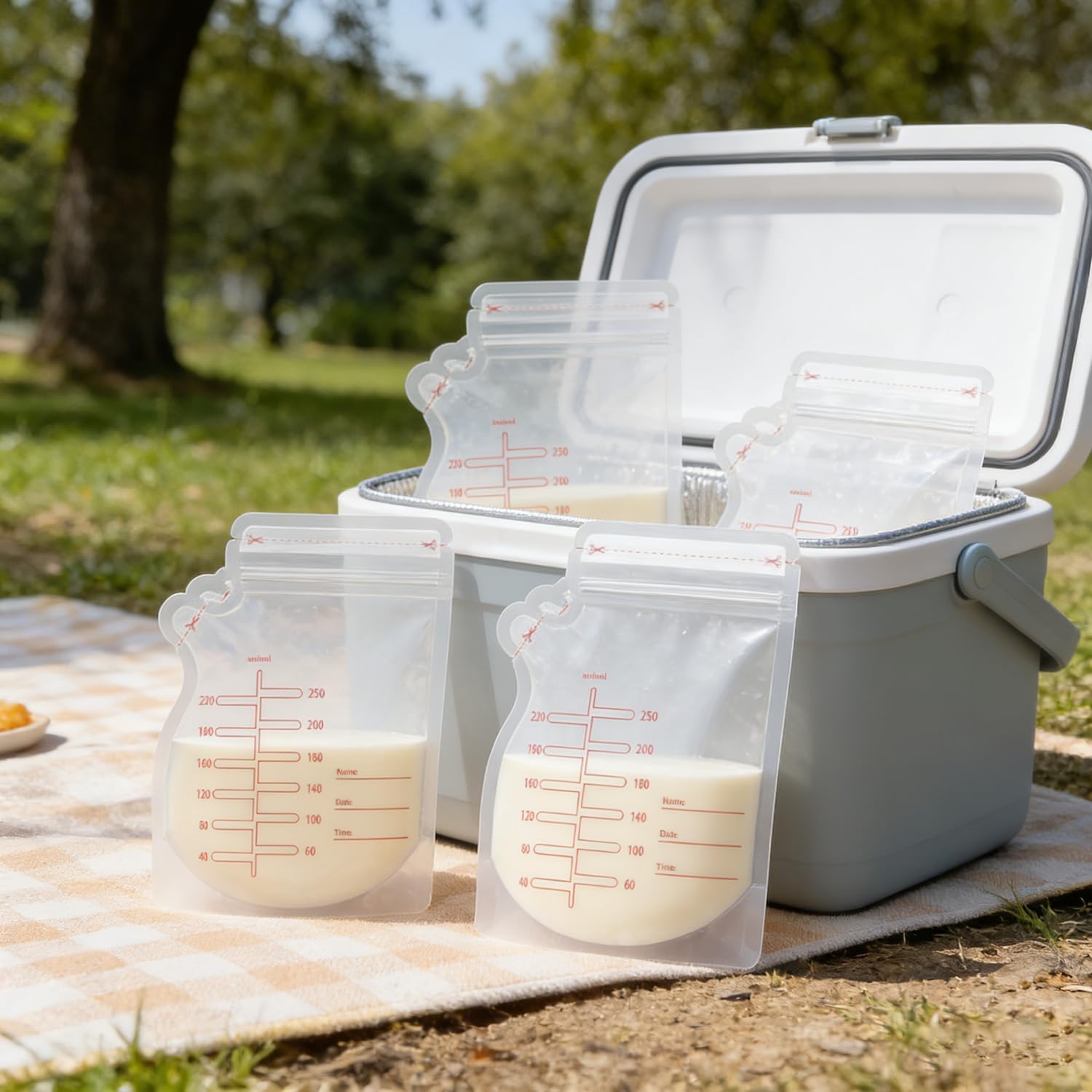 SKY-TOUCH 30pcs 250ml Breast Milk Storage Bags, Double-sealed, BPA-free With Pouring Spout Freezable Suitable for Breastfeeding