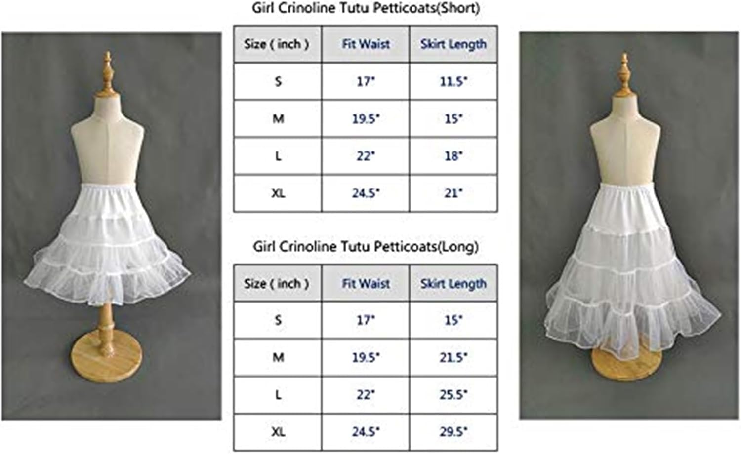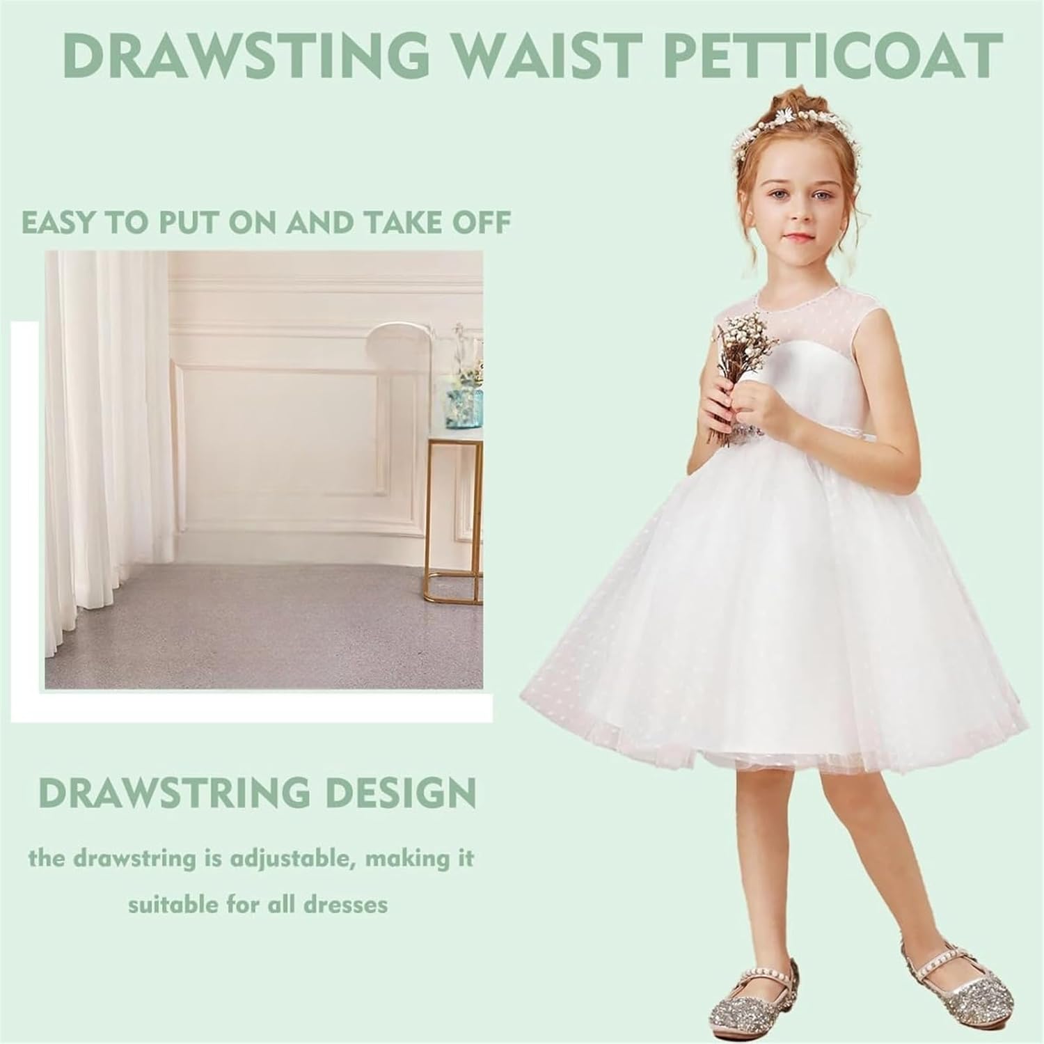 THE WHITE SHOP Girls’ White Skirt Petticoat, A-line 3 Hoop Underskirt Super Puffy, Ball Gown Petticoat, Children Adjustable Full Slips for Girls