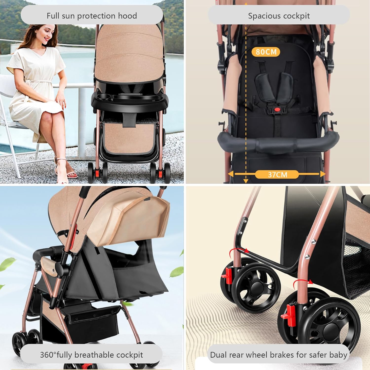 Clean and Comfortable Experience- Steer easily in any route with the 360-degree swiveling entrance wheels; all-wheel suspension absorbs shock on bumpy roads for a snug trip; extendable cover with vented peekaboo window(If the cover blocks the infant’s face, you may tuck the extension inside), adjustable recline and leg relaxation, and five-point harness mix to create a comfortable and protected haven for child on the go.