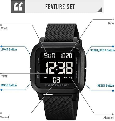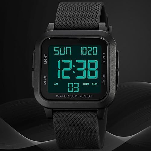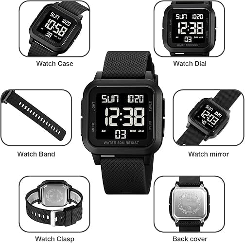 Unisex Digital Watch, Waterproof LED Digital Wrist Look ahead to Males and Girls, Sq. Face with Massive Numbers, Alarm, Stopwatch, Countdown Timer, Twin Time, 12/24H Format, Black