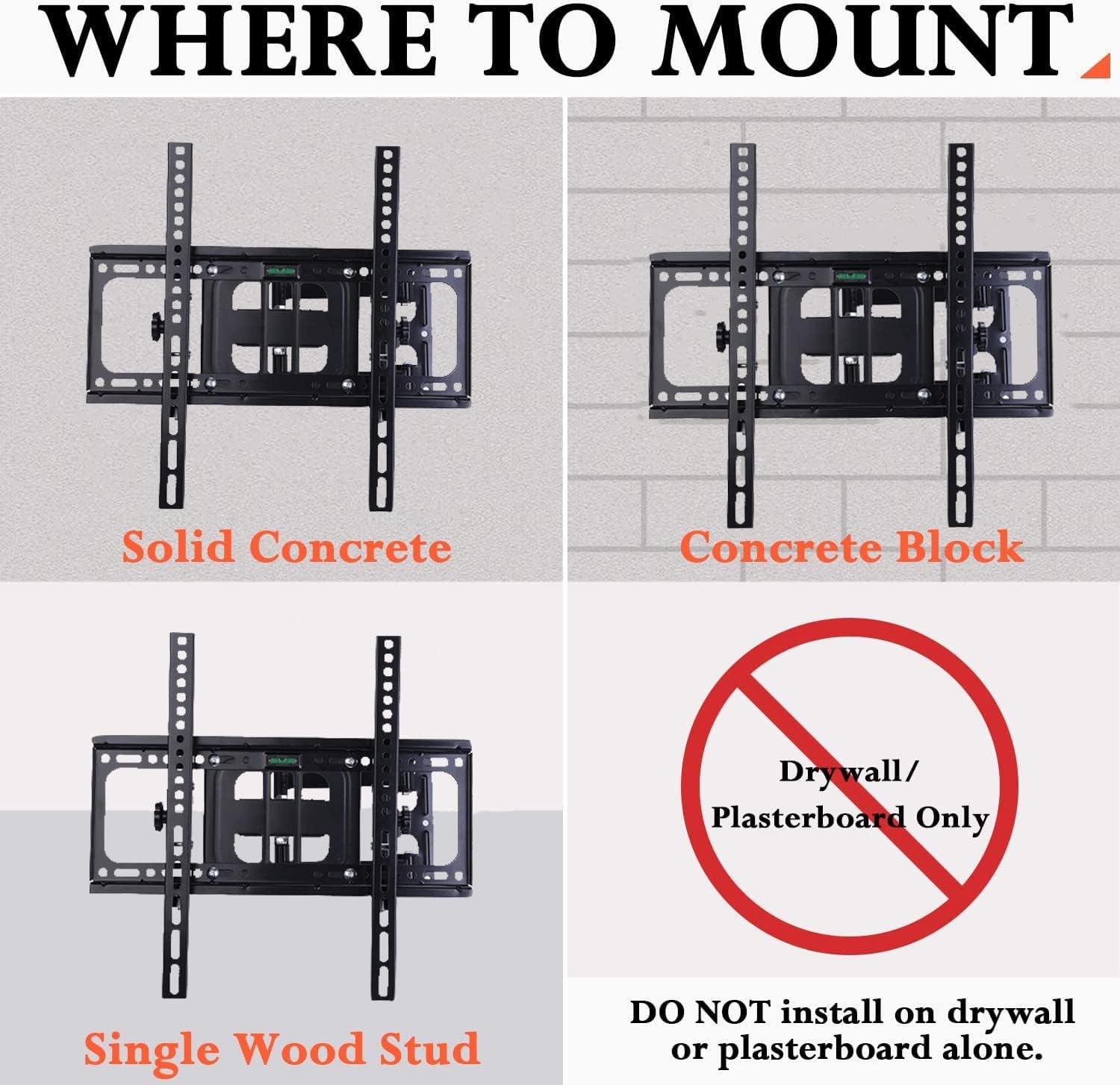 【Common Design】Our TV wall mount for many 40-80″ TVs with VESA from 200x200mm to 400x600mm. Max. weight capability as much as 50 kg. NOT for drywall alone set up!
